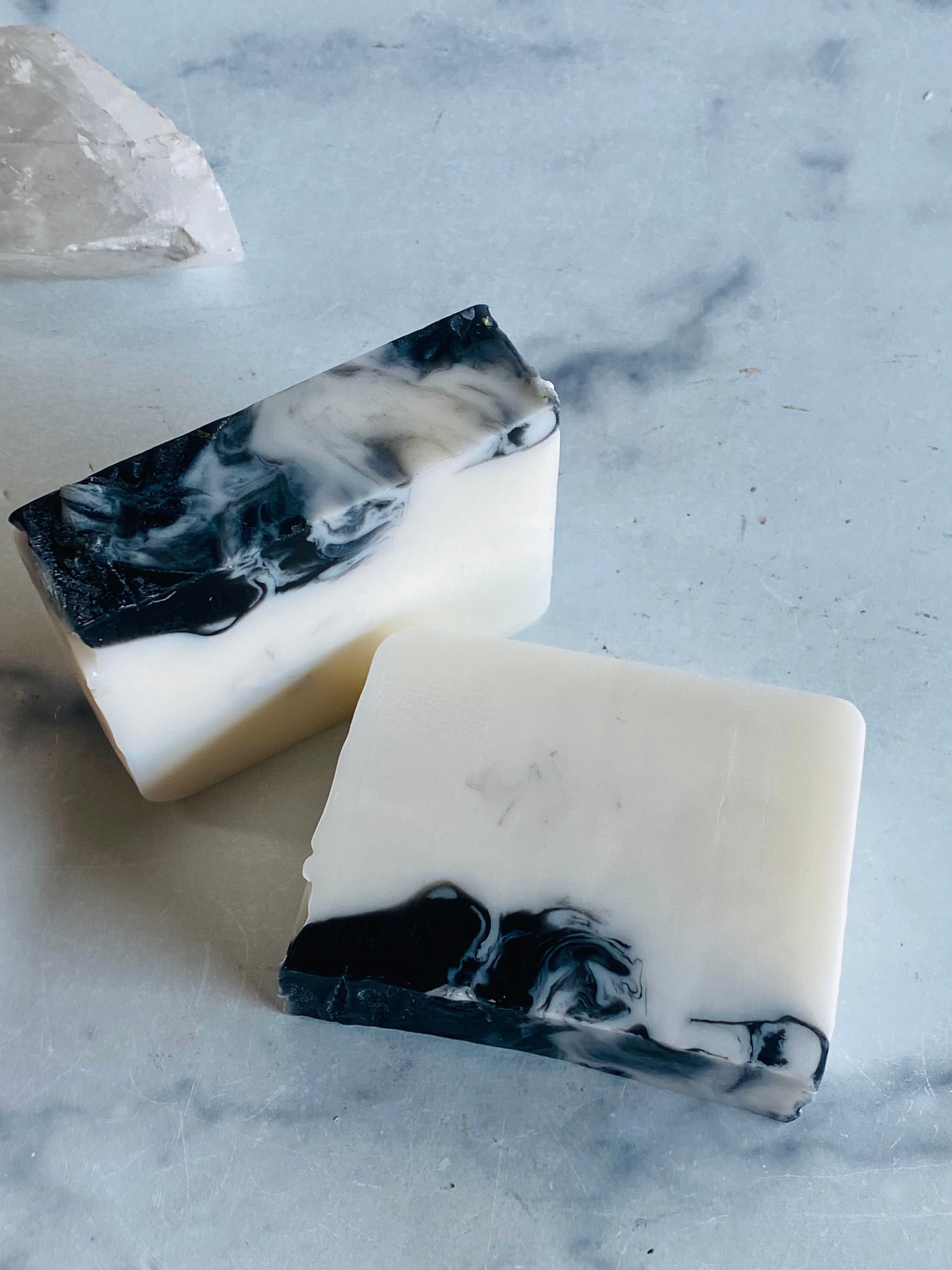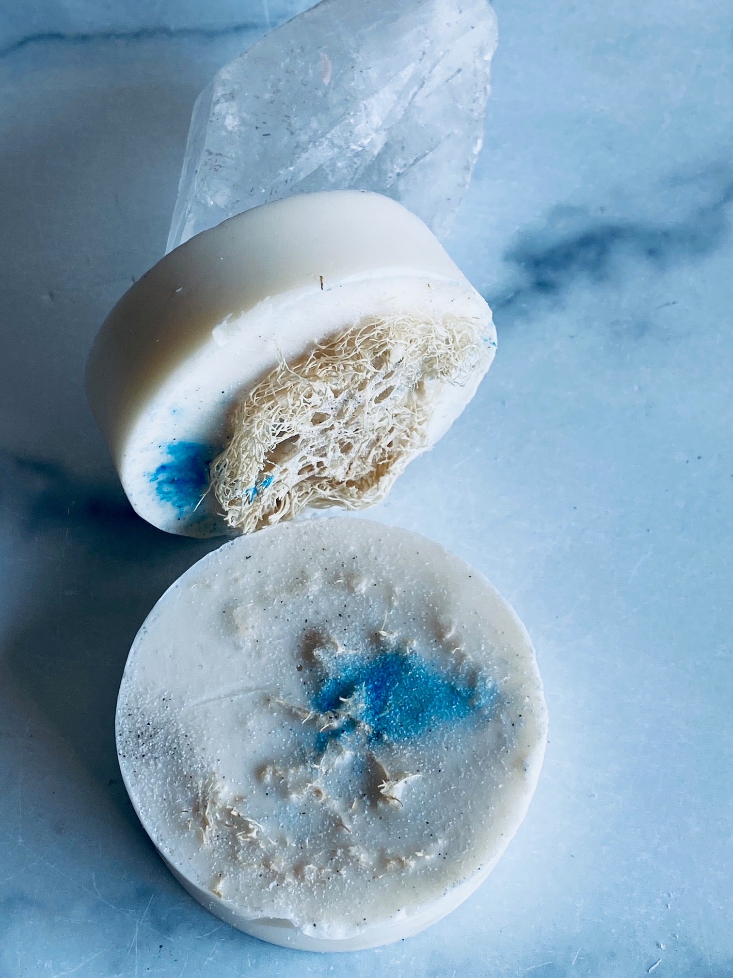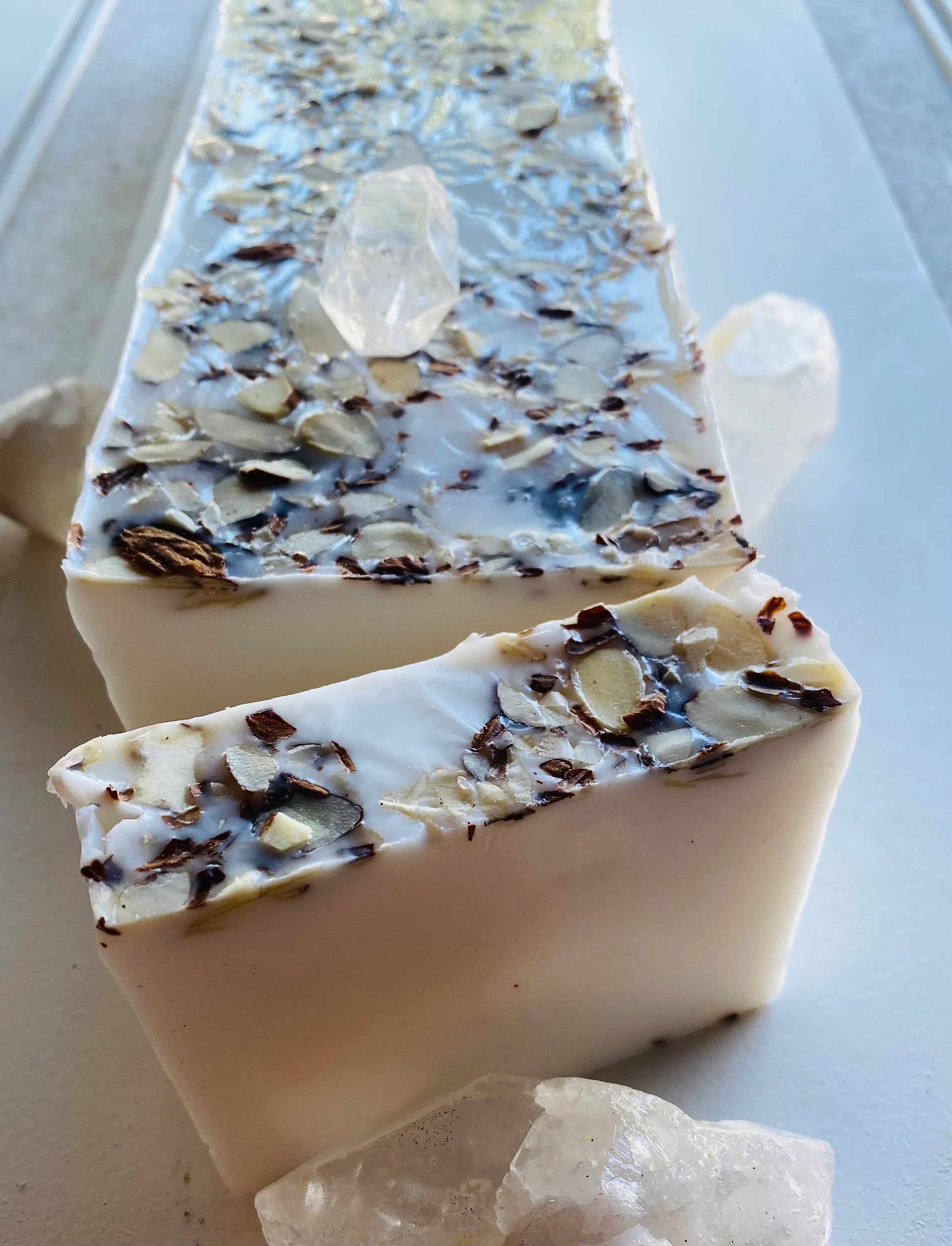 We mixed in essential oils, coconut oil, olive oil, glycerin, pure essential oils, charged it with Reiki and gemstones to amplify good vibes