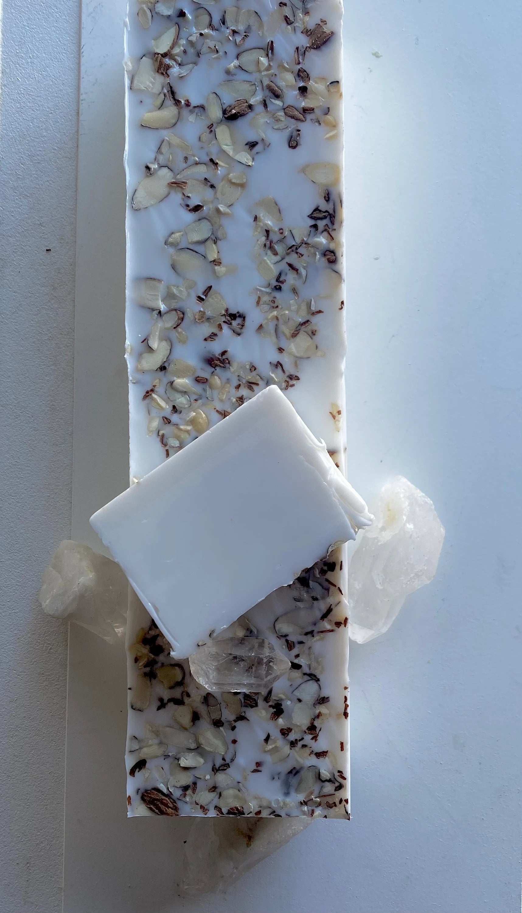 Our Almond soap is for Almond lovers! Pure Almond, Mandarin essential oils, topped with organic almonds. Scent is Almond as high note with a sweet light almost faint scent of citrus mandarin